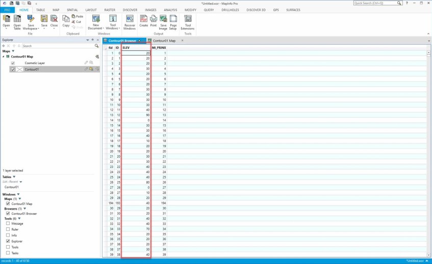 Welcome to Mapinfo Tutorial for Beginners. In this article, I am going to show you how to select objects by attribute in MapInfo Pro. There are various selection methods in MapInfo. One of my favorites is select by attribute. This way we can easily select all objects that meet our criteria based on the data attribute. For example, I have a contour file with an elevation value on its browser (data attribute). And then I want to select all contour lines that have an elevation value of 200 m.