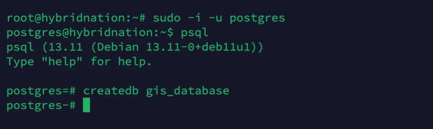 Now we are going to create a new database called gis_database.